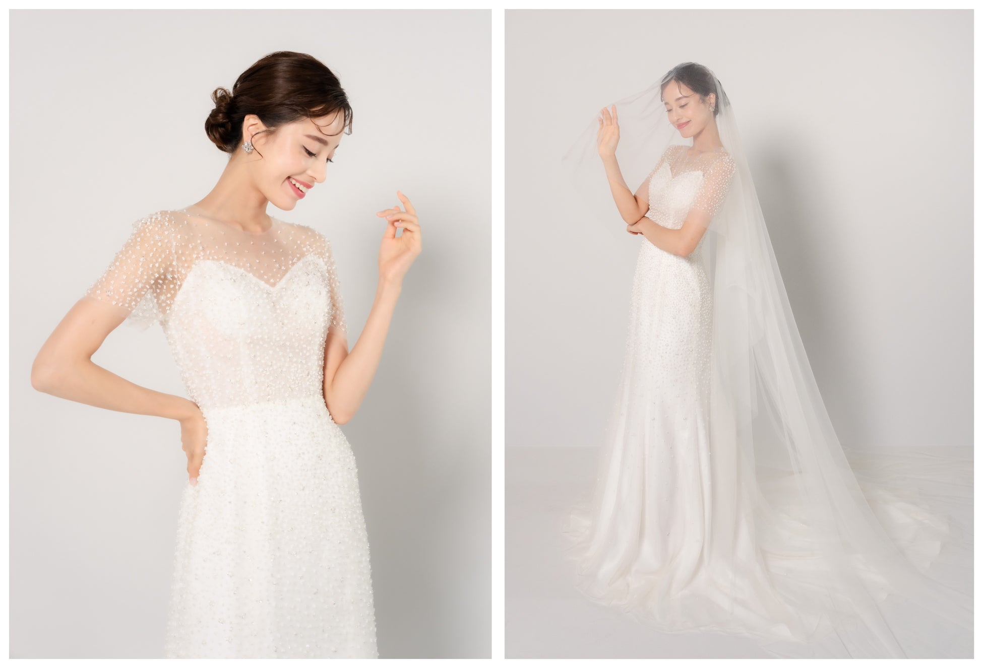 セットでパールのあしらわれたベールもご用意しています。