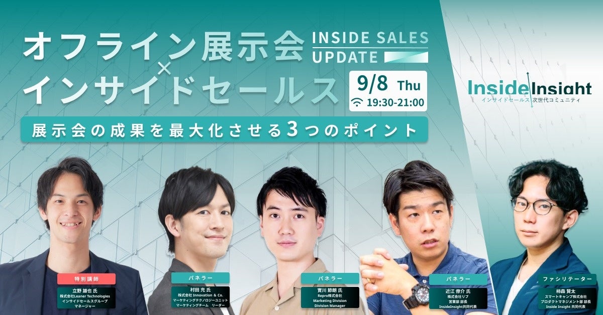 調達・購買部⾨向けのクラウドサービス「Leaner」を提供する株式会社Leaner Technologies(本社:東京都品川区、代表取締役:⼤平裕介)の社員、インサイドセールスグループ マネージャー立野 雄也が、本日2022年9月8日(木)にオンライン開催する「オフライン展示会×インサイドセールス 展示会の成果を最大化させる3つのポイント」に特別講師として登壇します。セミナーおよびパネルディスカッションを通して展示会における様々なポイントをお伝えします。奮ってご参加ください。