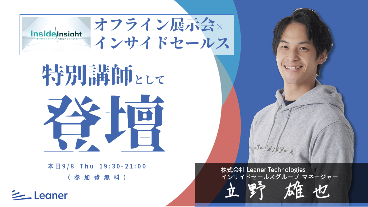 【本日19:30開始】Leaner インサイドセールス立野が特別講師として「オフライン展示会の成果を最大化させる3つのポイント」に登壇!