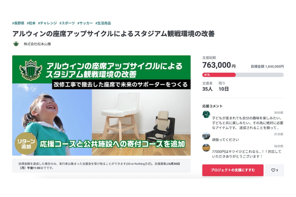 株式会社松本山雅(所在地:長野県松本市)は、6月30日(月)まで、クラウドファンディングに挑戦しています。