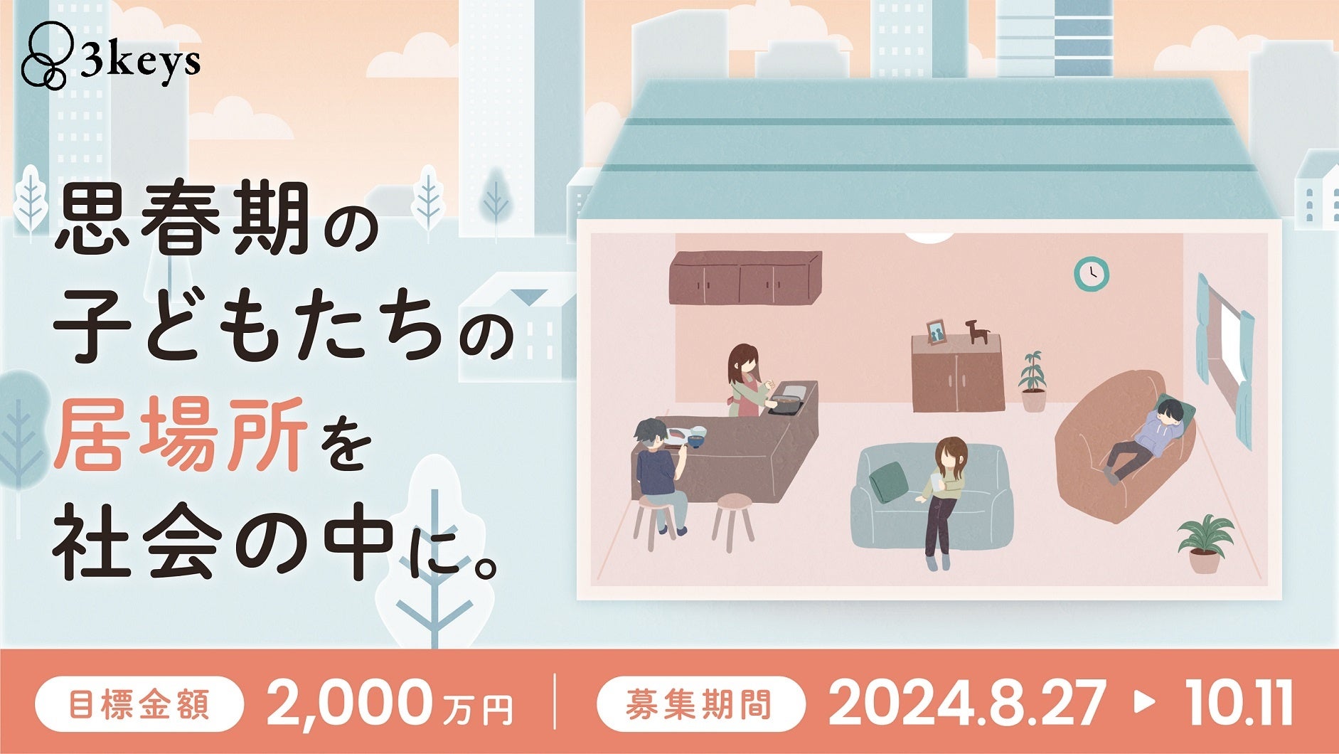 認定NPO法人3keys(東京都新宿区 代表理事:森山誉恵)は、3年間のユースセンター運営を通して得た知見と子どもたちの声を元に、行政と連携して思春期世代の居場所を社会に広げるための資金を募集します。