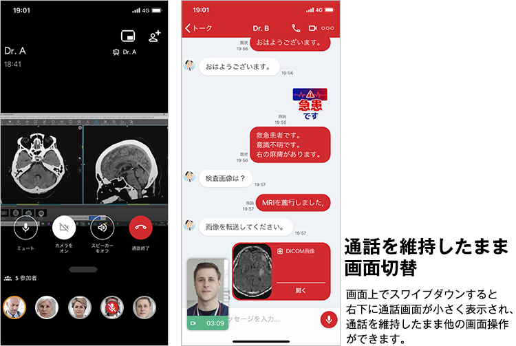 株式会社アルムが開発・提供する、医療関係者が高セキュリティ環境下でコミュニケーションをとることができるアプリです。標準搭載されたDICOMビューワーで医用画像を閲覧、チャットに共有することで、夜間休日などに院外にいる医師へのコンサルテーションツールとしての活用や、救急患者の転院時の病院間連携・情報共有などに利用されています。日本ではじめて保険収載されたプログラム医療機器です。 日本、米国(FDA)、欧州(CE)、ブラジル、サウジアラビアの医療機器認証を取得しています(販売名:汎用画像診断装置用プログラム Join)。