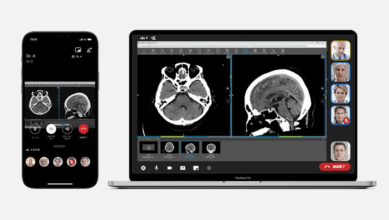 この度アルムは、医療現場の声にお応えして、JoinにWeb会議機能を追加しました。この機能により、DICOM規格の医用画像や手術映像を共有しながら多拠点間におけるWeb会議の開催が可能になります。
