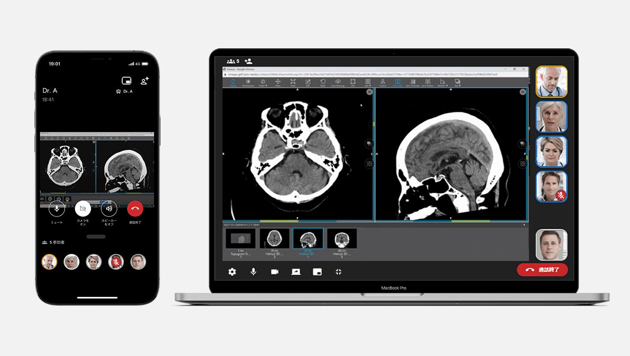 株式会社アルム(東京都渋谷区、代表取締役社長:坂野哲平、以下 アルム)は、日本初の医療機器プログラムとして認証および保険収載されている医療関係者間コミュニケーションアプリ「Join」(販売名:汎用画像診断装置用プログラム Join)へ、新しくWeb会議機能を追加したことをお知らせします。このWeb会議機能は一般的なWeb会議システムと異なり、セキュアな環境でDICOM規格の医用画像を共有しながら、多拠点間でのWeb会議が可能です。医用画像を表示・共有しながらオンラインで会議ができる機能を医療機器プログラムで実現することは世界初*です。