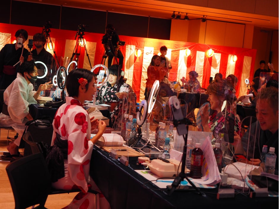 会場内は夏祭りをテーマに装飾され、ドレスコードは「浴衣」と夏一色でスタートしました。各々のライバーの個性を生かした装いに身を纏いイベントに参加するライバー達は会場の装飾に負けないぐらいの華やかさがあり、会場は大いに賑わいを見せていました。