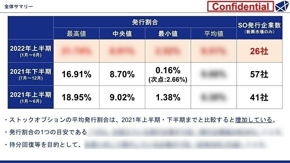 SOICO株式会社は2020年度より、直近上場企業のストックオプション付与量や活用方法等を収集・分析し、お役立ち資料「ストックオプション解体新書」として無料公開してまいりました。第5弾となる今回は、2022年上半期の新規上場企業を対象にストックオプションの配布事例を調査し、全体及び個別の統計データを一覧表にまとめております。上場・未上場問わず、ストックオプションは、キャッシュアウトを抑えた形での採用予算の確保や、企業価値向上のためのインセンティブ設計ができることから、極めて重要な資本政策上の検討事項となっています。取り分け、未上場企業の場合は、ストックオプションがほぼ唯一の株式報酬の選択肢であるため、上場企業以上に経営戦略上の重要度が高いと思われます。