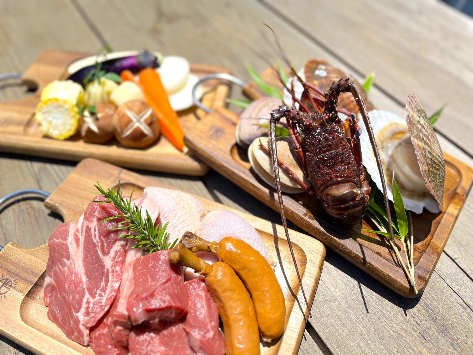 ①手ぶらBBQ(内容:肉3種・野菜・海鮮2種・焼きおにぎり+BBQ機材)