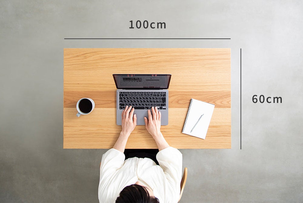 KANADEMONOが提案するデスクサイズの目安は、ノートPCを置く場合下記とされています。1cmごとのサイズオーダーを活用し、空間や人数に合わせてカスタマイズをお楽しみいただけます。
