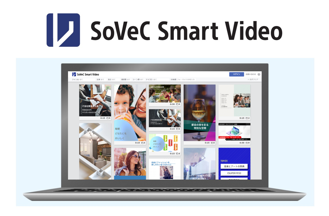 SoVeCの提供するAIを活用した自動動画生成クラウドサービス「SoVeC Smart Video」は、ブラウザだけで誰でもあっという間にプロのデザイナー級の動画を作ることができる新しいクラウドサービスです。難しい知識は不要で、ソニーグループの知見を生かし開発した1300以上のフォーマットから用途や配信先毎に適したフォーマットをシステムで絞り込み。素材投入するだけで簡単に動画が作成できます。