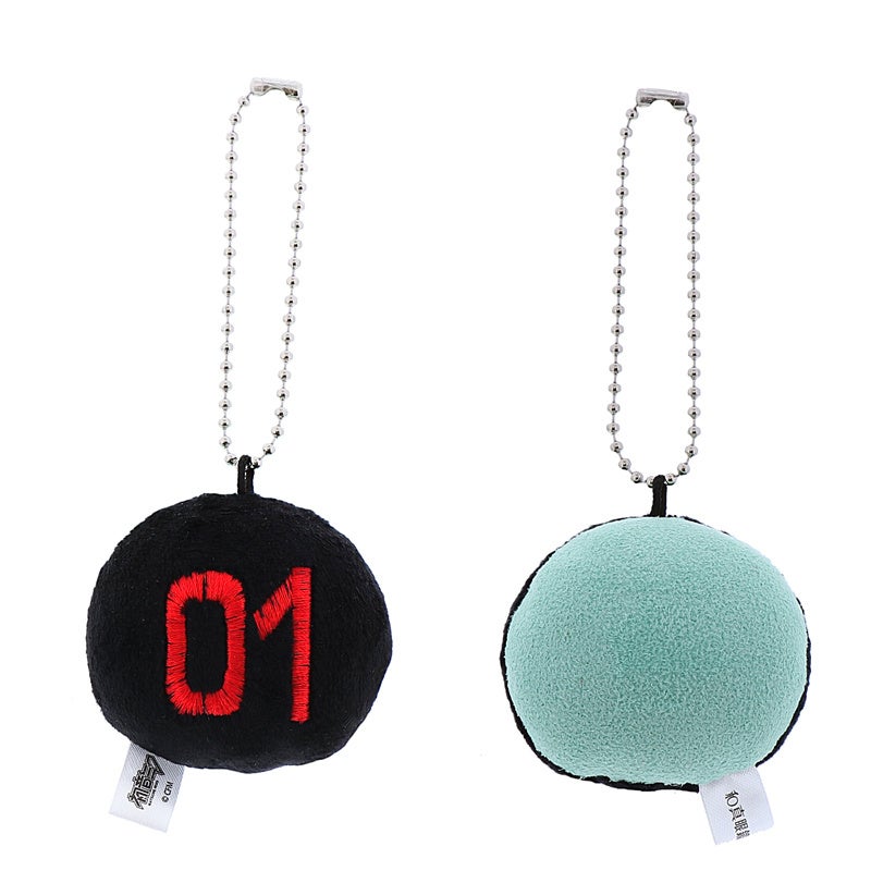 マスコットクリーナーアイコンタイプは、各キャラクターの肩番号(MEIKO・KAITOは頭文字)をモチーフに立体化したボールチェーン付ぬいぐるみ型クリーナーです。裏がメガネ拭き素材になっており、メガネのレンズやスマホ画面のお手入れに使用できます。