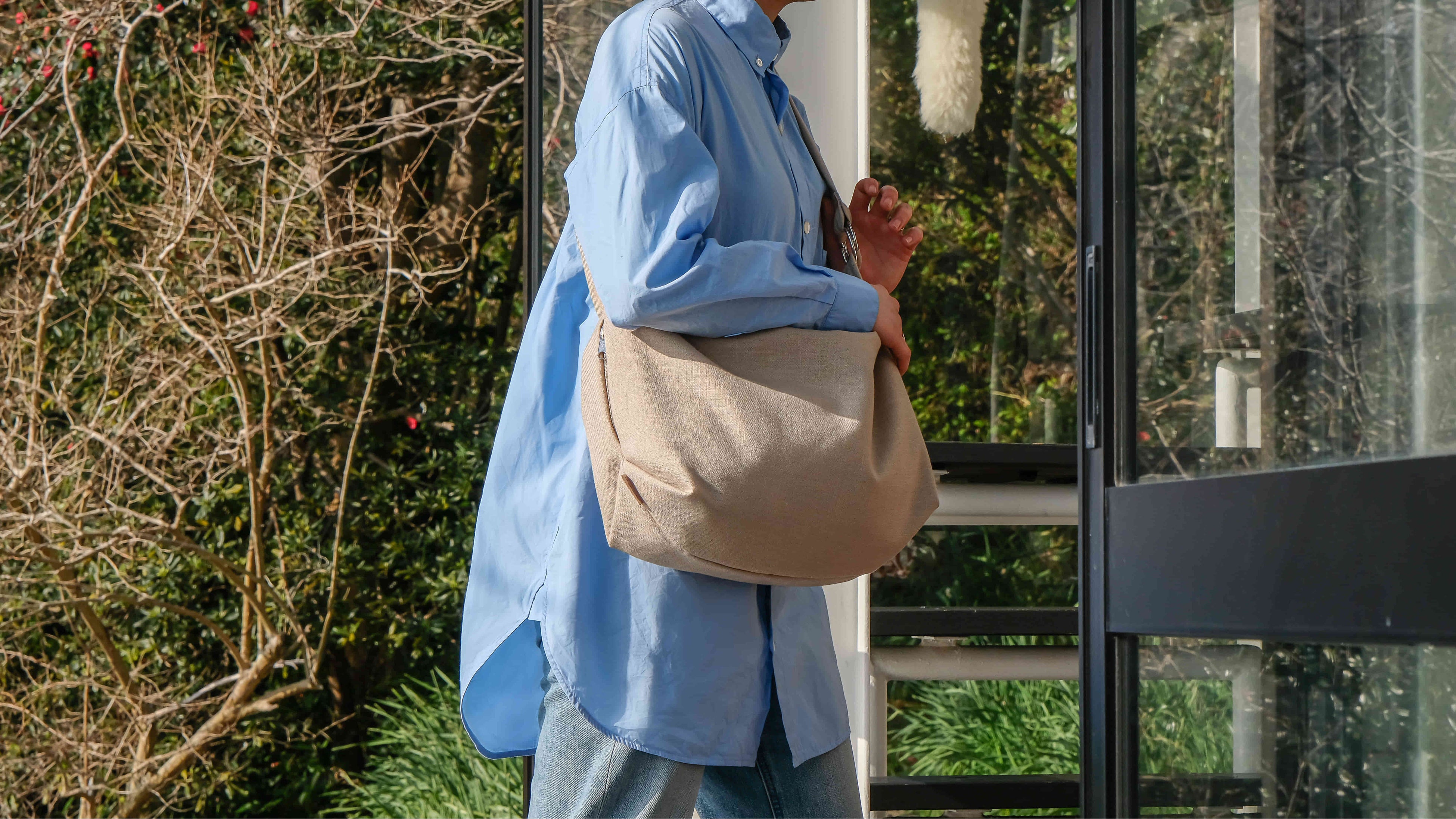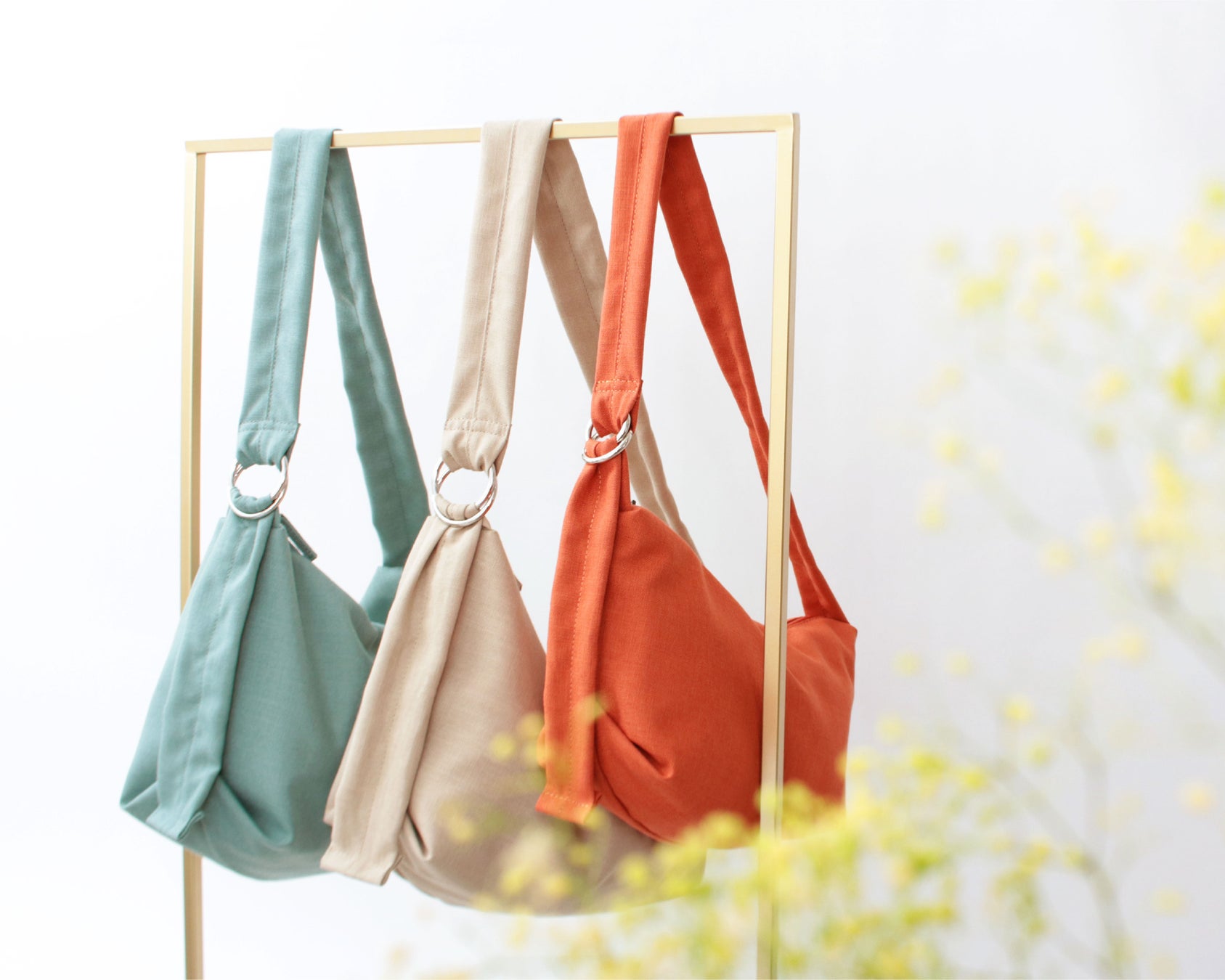 体に馴染むフィット感が使いやすいハンモックバッグも、リネン調素材なら暑い季節でもサラッと快適にご使用いただけます。ハリのある生地感なのでカジュアルな印象だけでなく、ナチュラルなファッションとの相性も抜群です。