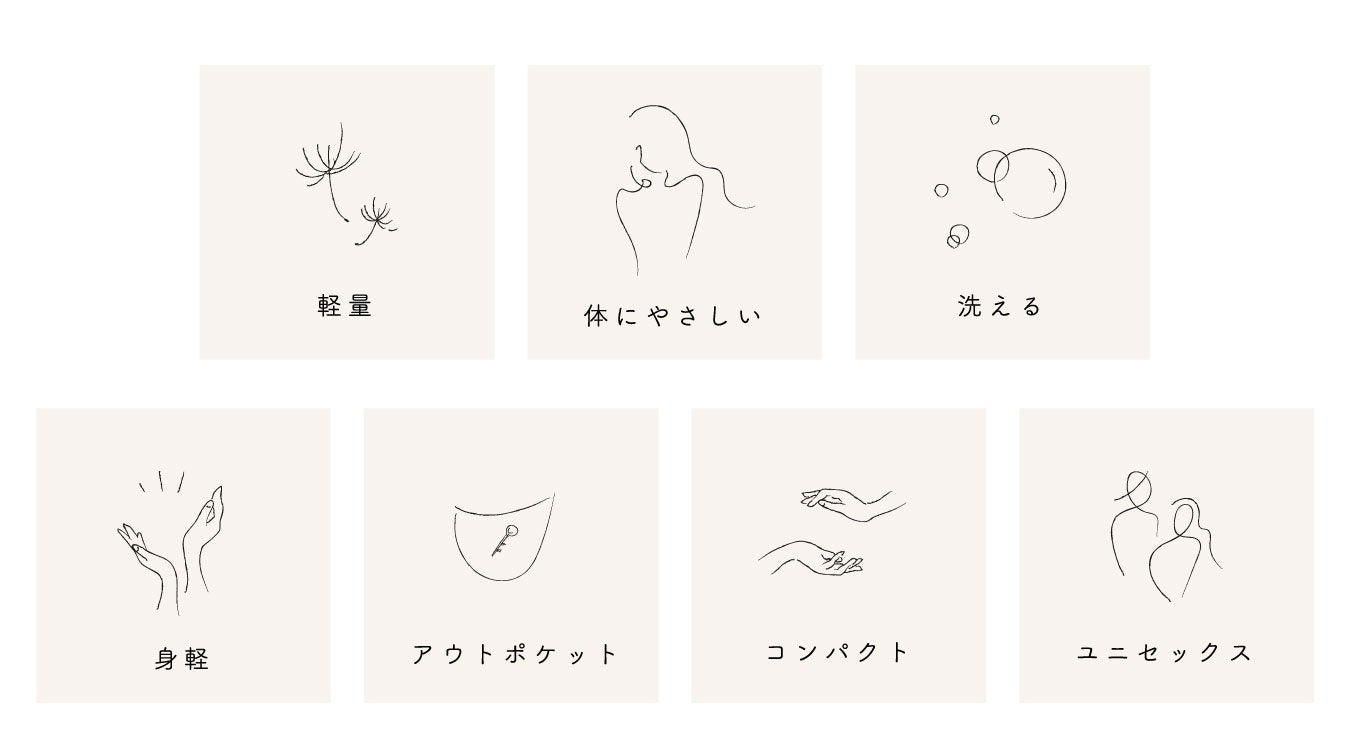 1:軽量柔らかく軽い素材を使用し持ち歩きラクラク