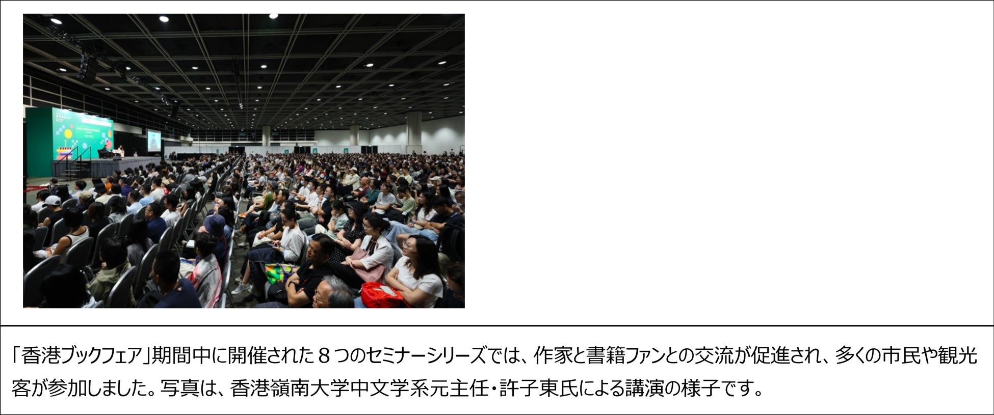 今年は「Food Culture: Future Living(食の文化・未来のくらし)」をテーマに、若年層向け施策や人気作家の講演が実施され、大きな反響を得ました。開催35周年を記念し、1990年生まれ1万人以上を対象とした無料入場キャンペーンを含む3つの特別企画を実施しました。これらの取り組みが高い注目を集め、セミナーは満席となるなど、大きな盛り上がりを見せました。出展社「Creation Cabin Limited」では、会場直後から長蛇の列ができるほどの賑わいを見せました。中でも、香港および日本でも大ヒットとなった「トワイライト・ウォリアーズ 決戦!九龍城砦』ブームに乗って出版した外伝『信一傳』(英題:The Rise Within the Walls | 1973–1988)が大きな注目を集めました。特に日本人読者の関心が高く、Creation Cabin社の編集者である盛杰(シン・キット)氏は「毎日30人から40人ほどの日本人読者が私たちのブースを訪れてくださいました。その中には、この本を購入するためにわざわざパスポートを更新して香港まで来てくださった方もいて、非常に感動的でした」と語りました。