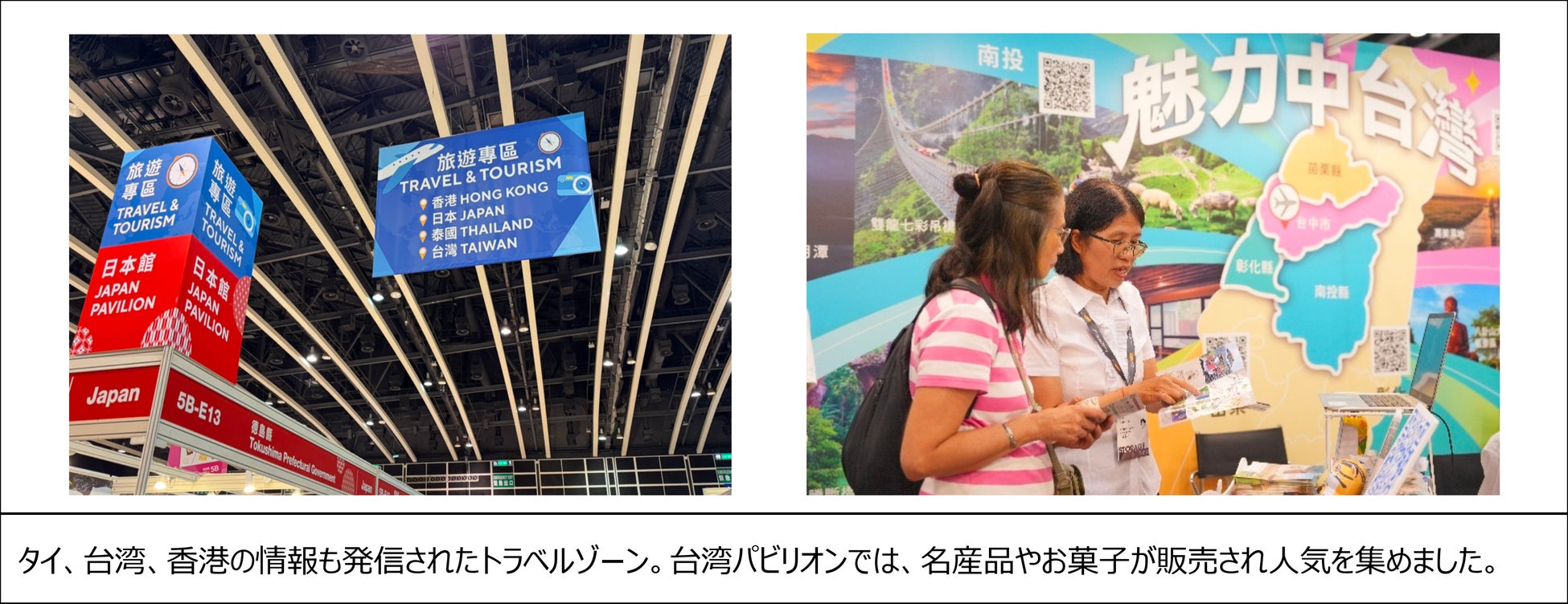 香港貿易発展局(HKTDC)が主催した香港最大規模のBtoCイベント、第35回「香港ブックフェア」、同時開催の第8回「香港スポーツ&レジャーエキスポ」、第5回「ワールド・オブ・スナック」は、盛況のうちに閉幕しました。3つの合同イベントには約770以上の出展者が集結。「読書」「スポーツ&レジャー」「食」をテーマにした体験型の展示や企画で来場者を魅了しました。日曜日には台風の影響で終日閉場となったものの、会期中には香港・中国本土・東南アジア・日本を中心に延べ89万人が来場し、高い関心が寄せられました。今回新たに設置された「トラベルゾーン」の中でも、ひときわ多くの来場客で賑わいを見せたのが「ジャパンパビリオン」です。17の地方自治体を含む計20の団体・組織が出展し、観光関連書籍や地域にゆかりのある漫画の紹介、さらには文化や魅力の紹介など、多彩なインバウンドプロモーションが展開されました。