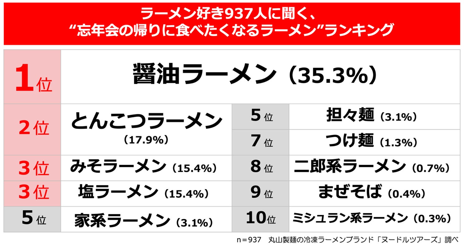 「忘年会の帰りに食べたくなるラーメン」ランキング!ラーメン好き937人への調査結果発表