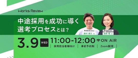中途採用を積極的に実施されている企業2社の人事担当者が登壇!3月9日(水)中途採用に関するオンラインセミナーを開催!