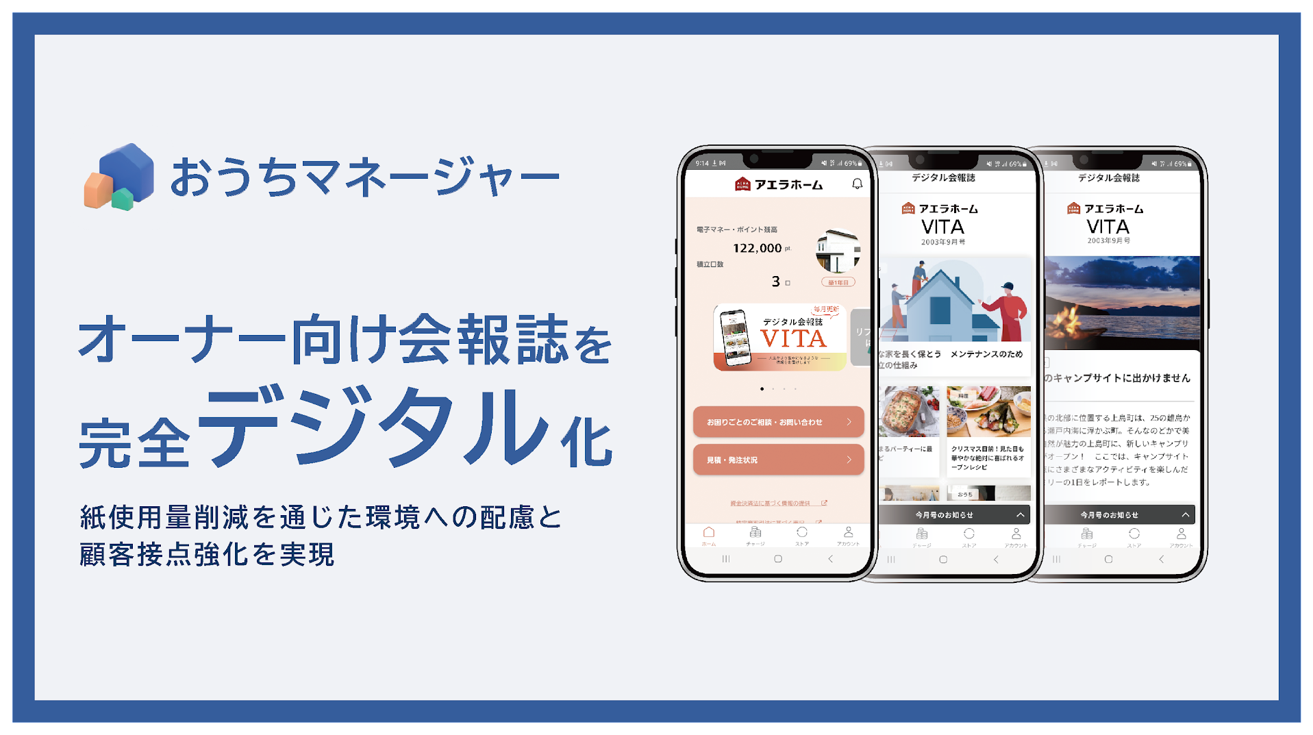 アエラホームでは、オーナー様へのサービス向上ツールとして「おうちマネージャー」を2023年6月に導入いたしました。