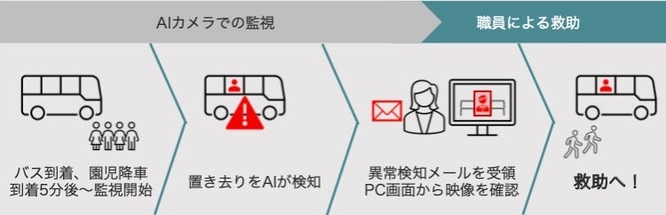■「IDEA bus security」を用いた置き去り検知から救助までの流れ