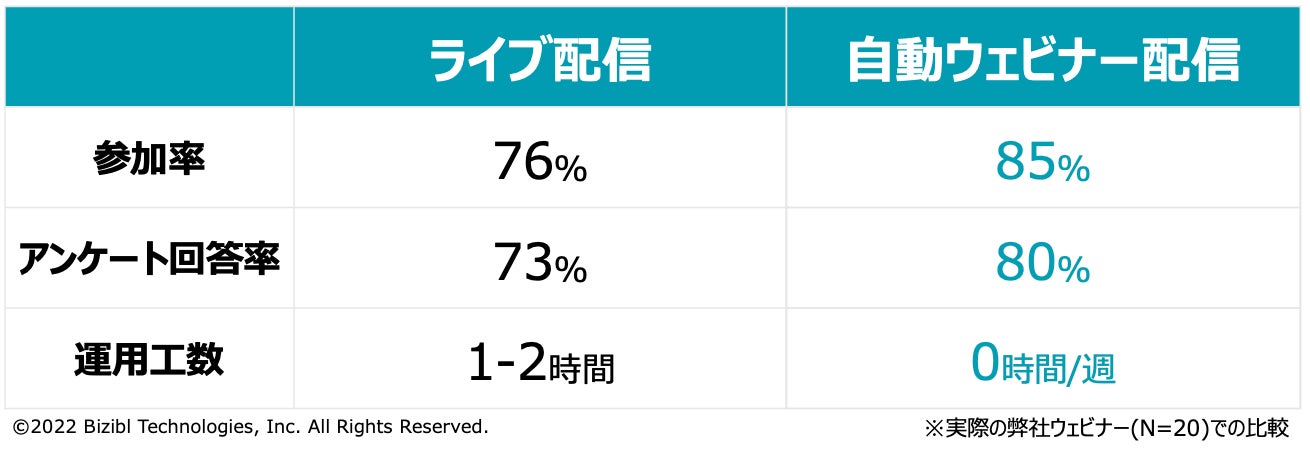 ウェビナーという手法を「リードの獲得・育成につながる新しいマーケティング施策」とすることを目指す『Bizibl』にとって、営業時間に捉われることなく顧客との接点を増やすことができる「自動ウェビナー機能」は重要な一手であり、企業のウェビナーマーケティングへ大きく貢献します。