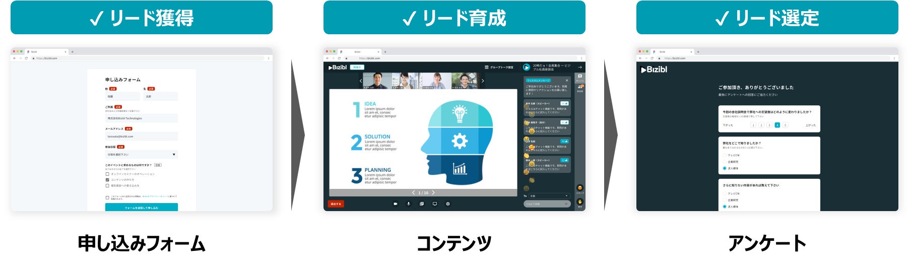 主催者がオンタイムで同席しなくとも、自動的に“リード獲得・リード育成・リード選定”が実行可能。