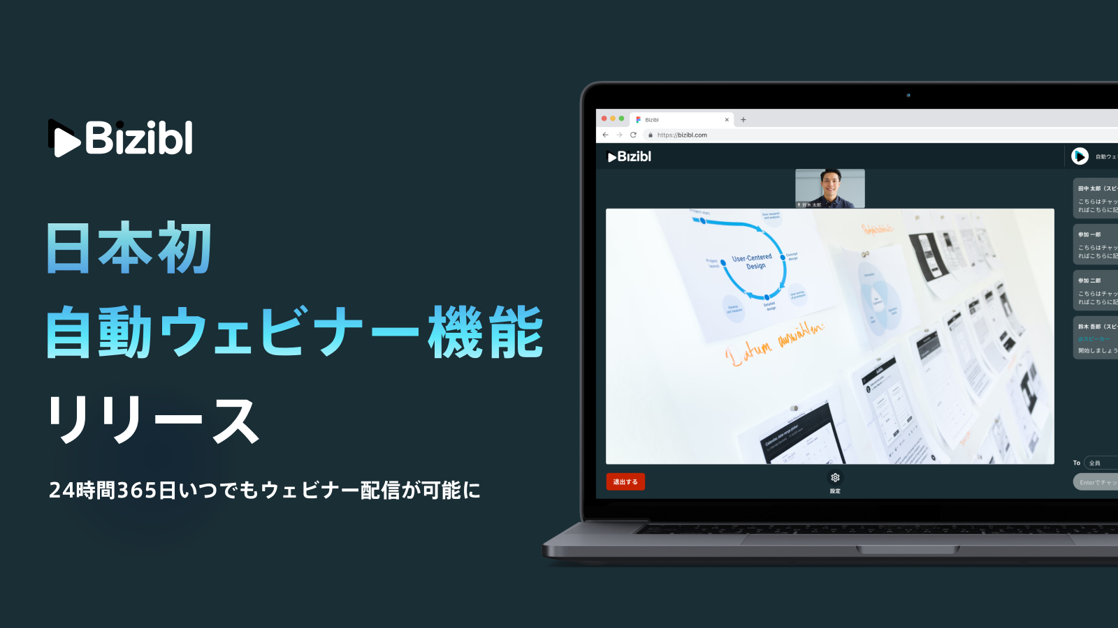 日本初の機能、ウェビナーマーケティングSaaS『Bizibl』が自動ウェビナー機能をリリース。24時間365日いつでもウェビナー配信が可能に。