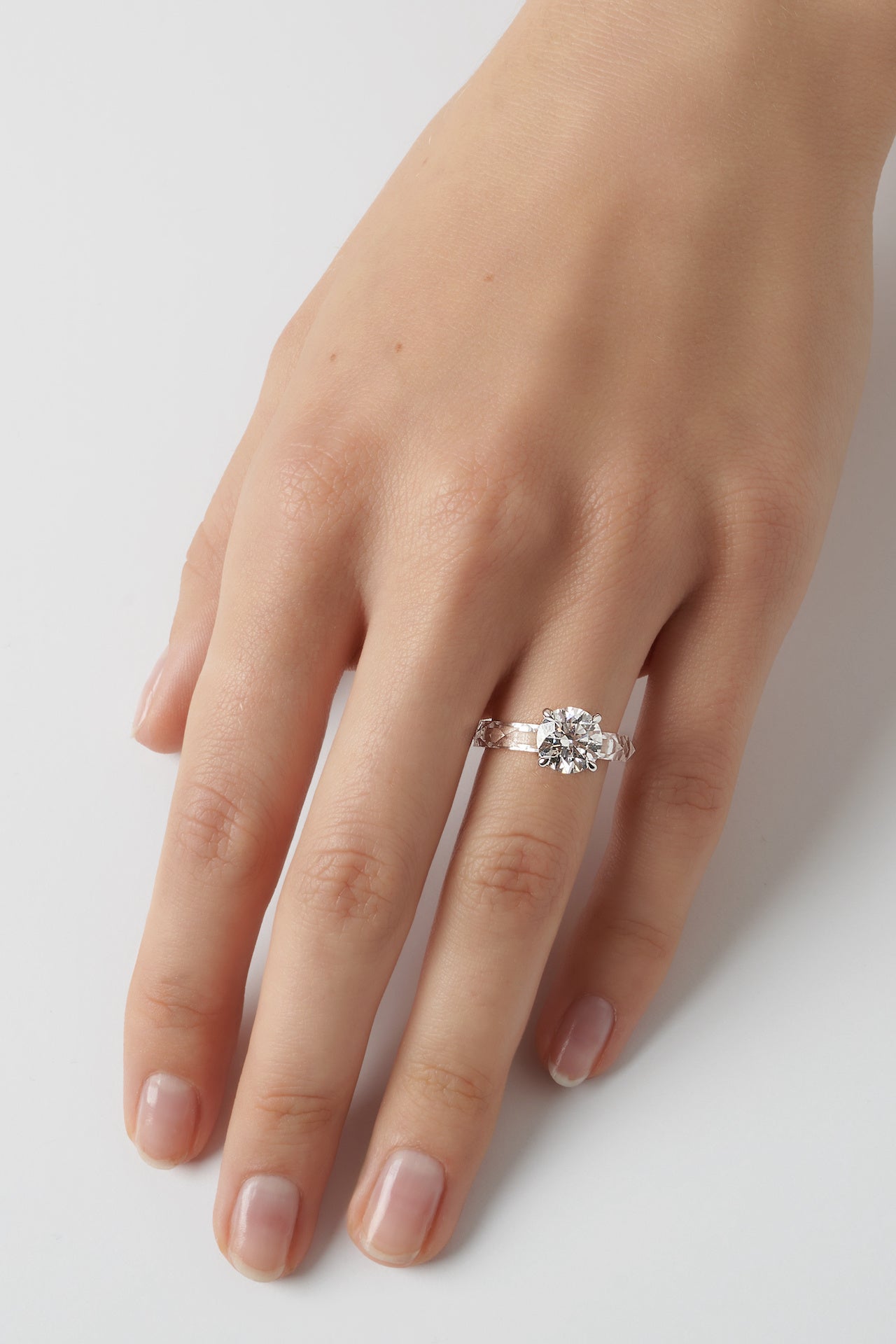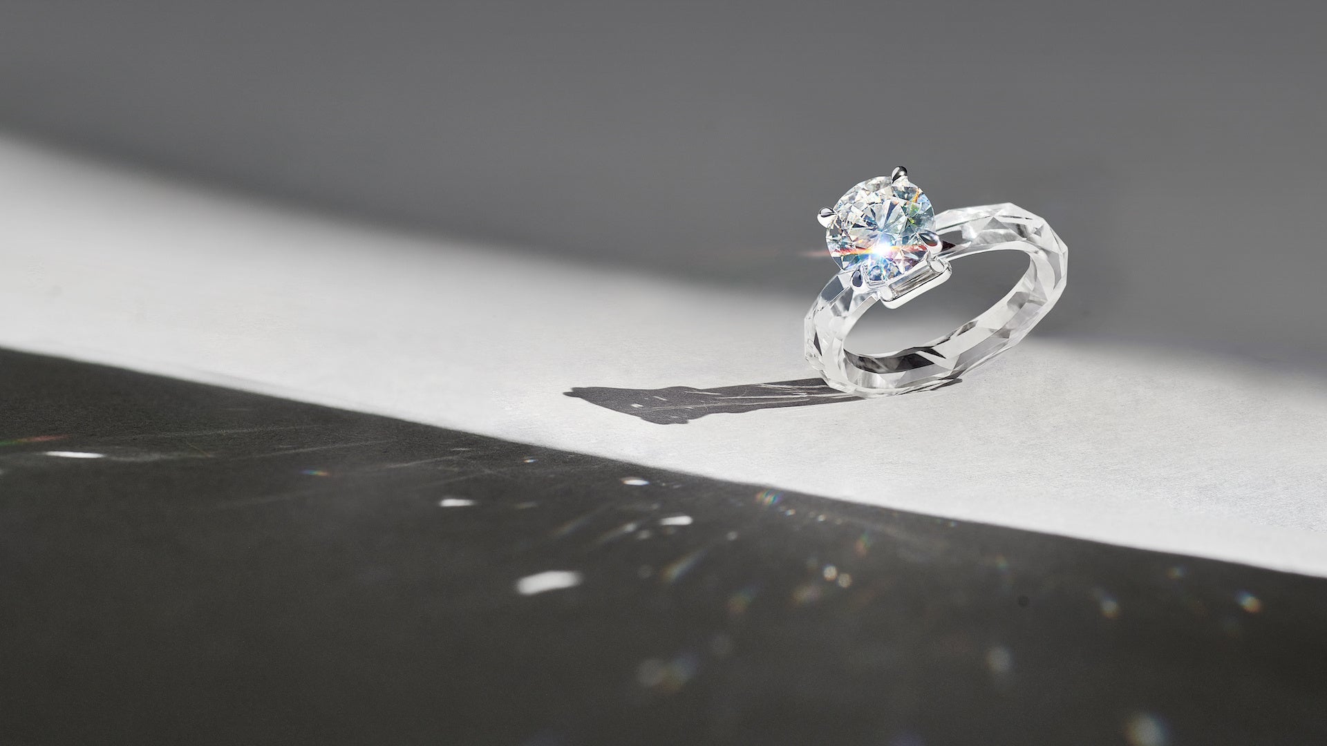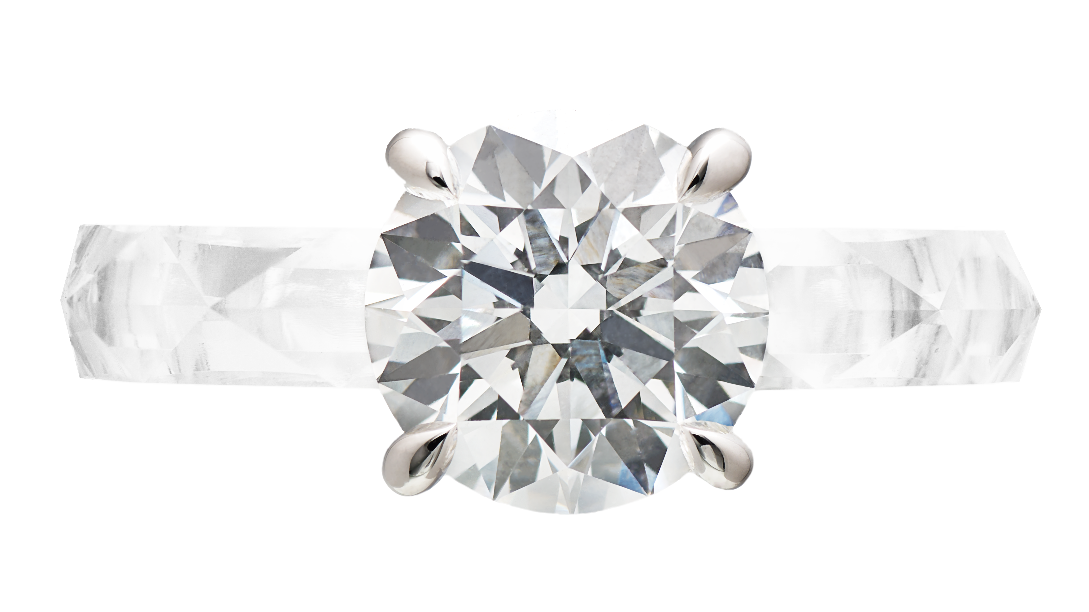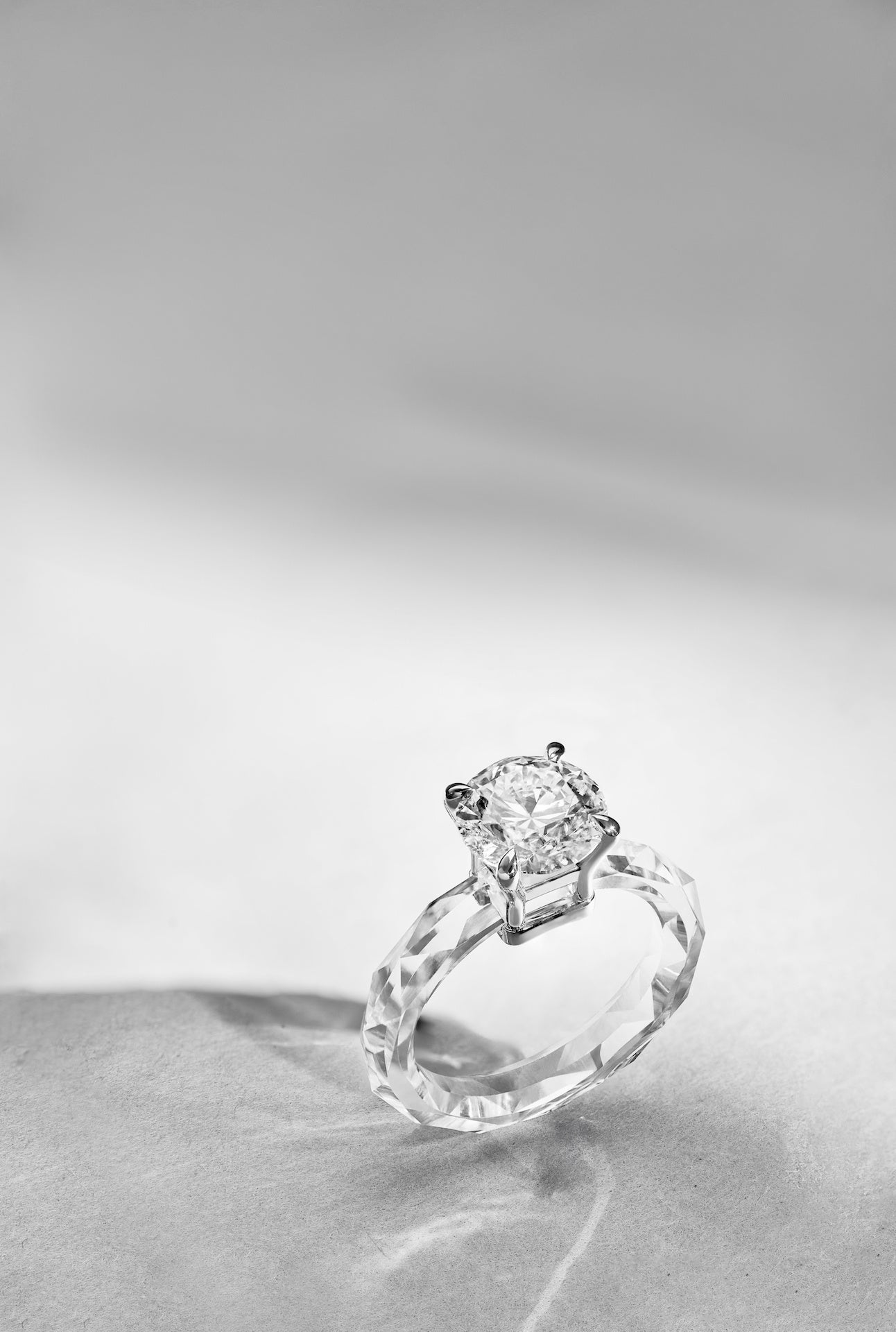 この最先端技術がTHE RINGの原動力であり、手作業で丁寧に彫り込まれたリングバンドは、一片のラボグロウンサファイアから作られています。最大の輝きを確保するために、ファセット処理やシンメトリー、滑らかさなど、全て最高の基準で丹念にカットされ、研磨されています。18Kホワイトゴールドに飾られる中央のストーンは 2カラット、Fカラー、VS1のラボグロウンダイヤモンドで、3種類の形(ラウンドカット、プリンセスカット、オーバルカット)から選ぶことができます。