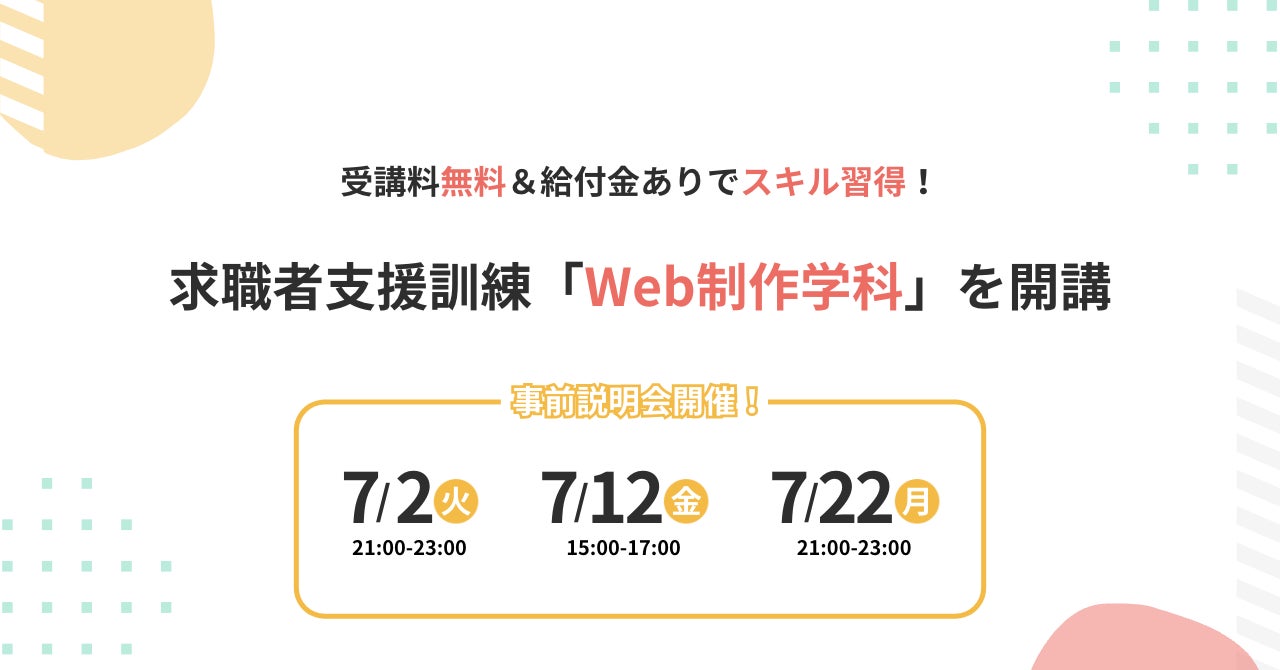 〜無料で最新のWeb制作スキルを習得、転職を全面サポート〜
