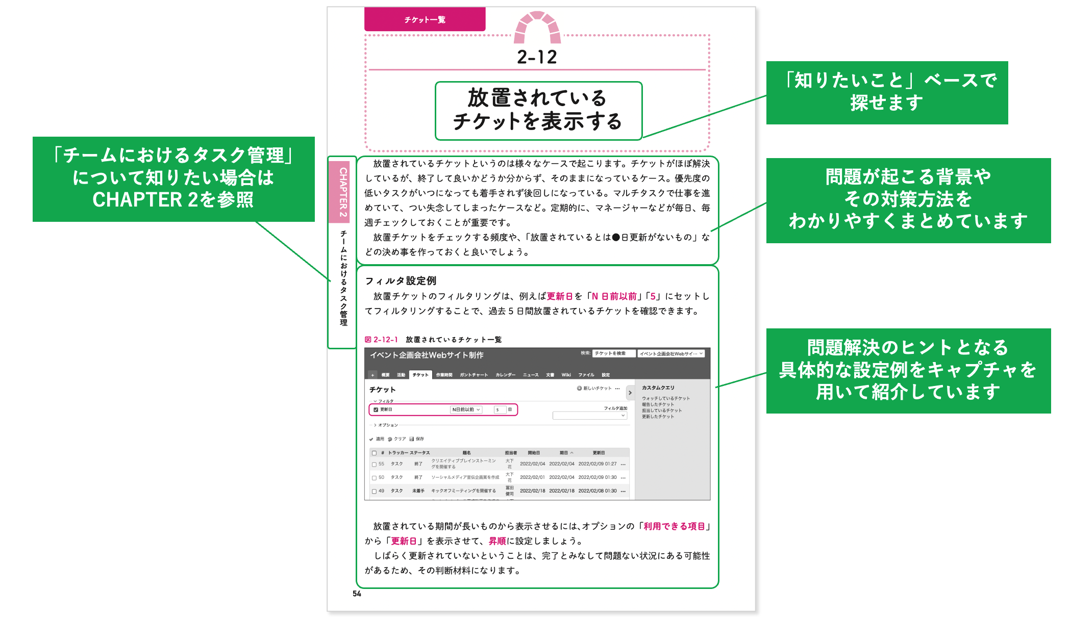オープンソースのプロジェクト管理、タスク管理ツール「Redmine」の入門書です。最新のバージョン5.0に対応しています。Redmineを初めて使う人でも、Redmineを長年使っている人でも、必要な情報をすぐに参照したり、興味のある箇所から理解を深めたりできる逆引きスタイルでまとめています。