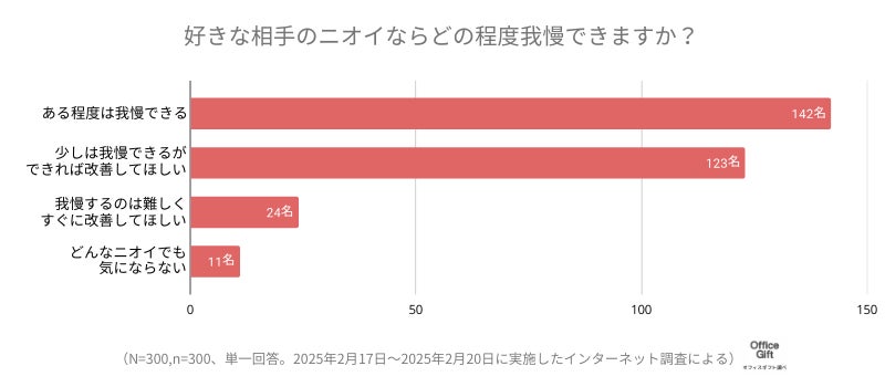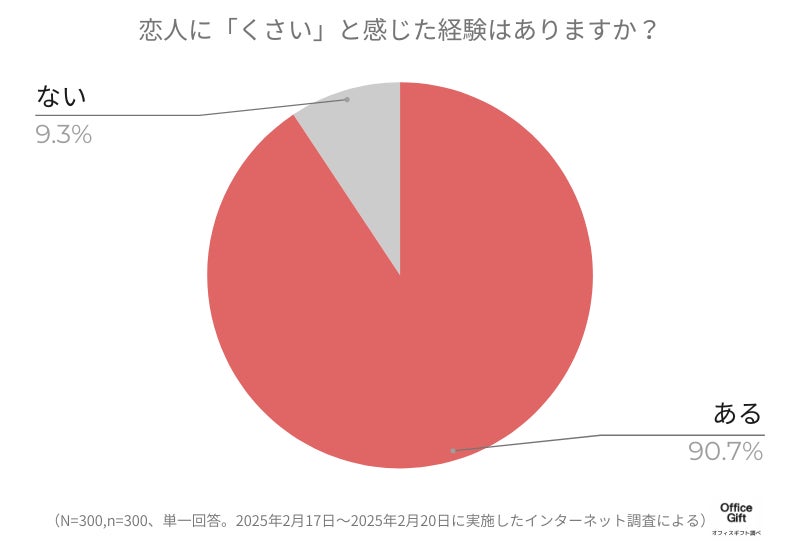 株式会社ウェブギフト(本社:東京都豊島区、代表取締役社長:冨田 仁)が運営する「オフィスギフト(URL:https://www.officegift.jp/)」は、交際経験のある男女300名に恋人のニオイに関するアンケート調査を実施しました。