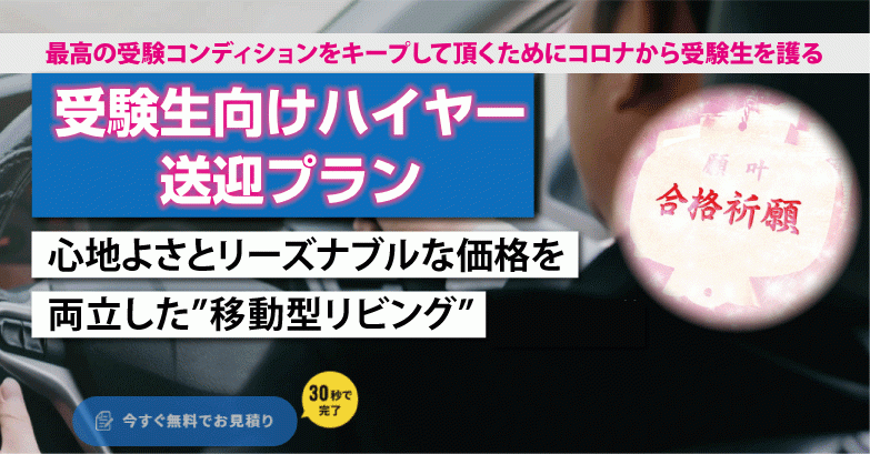 ※こちらのプランをご希望される場合は見積フォームにて「受験生向けハイヤー送迎プラン」とご記載下さい。