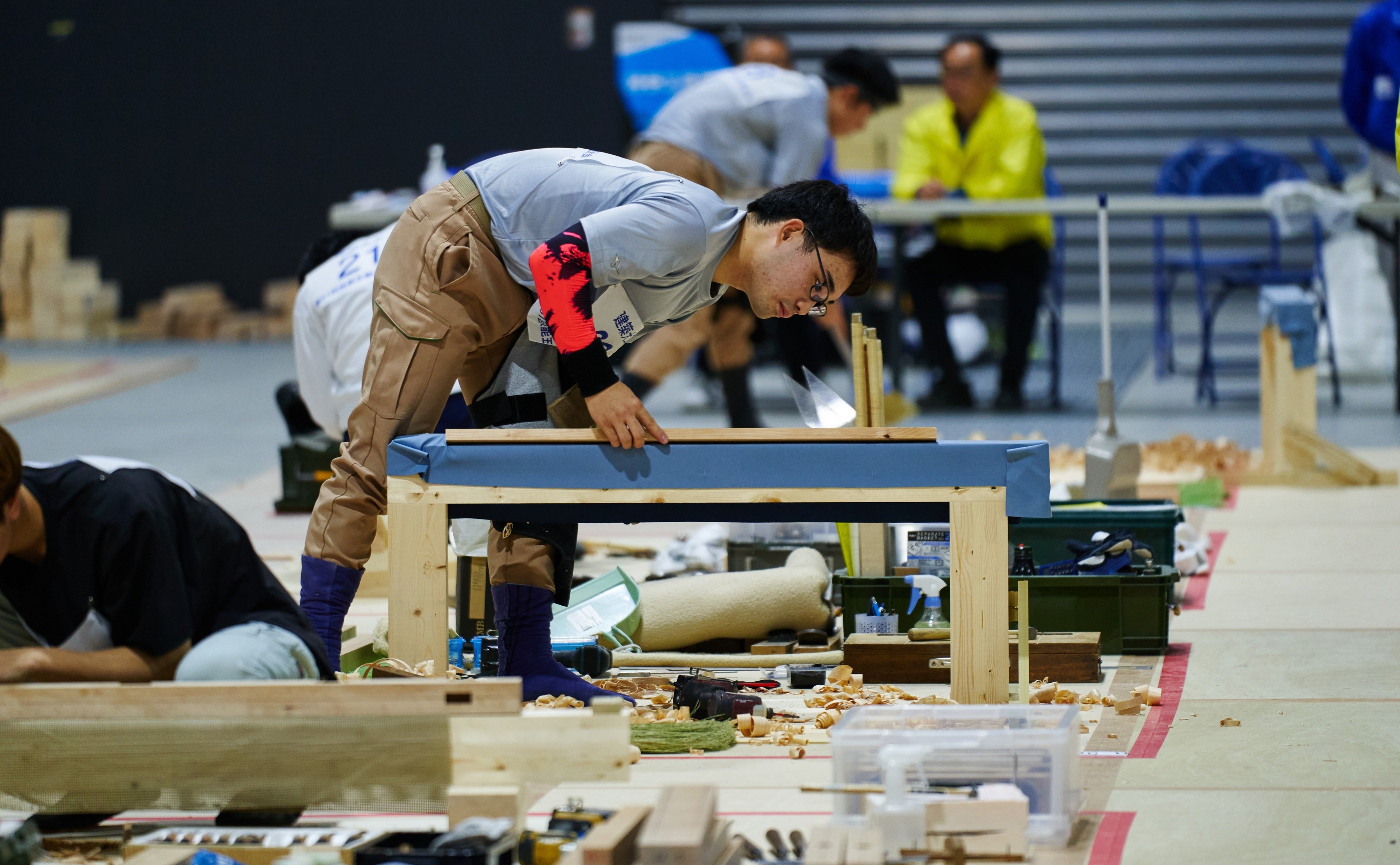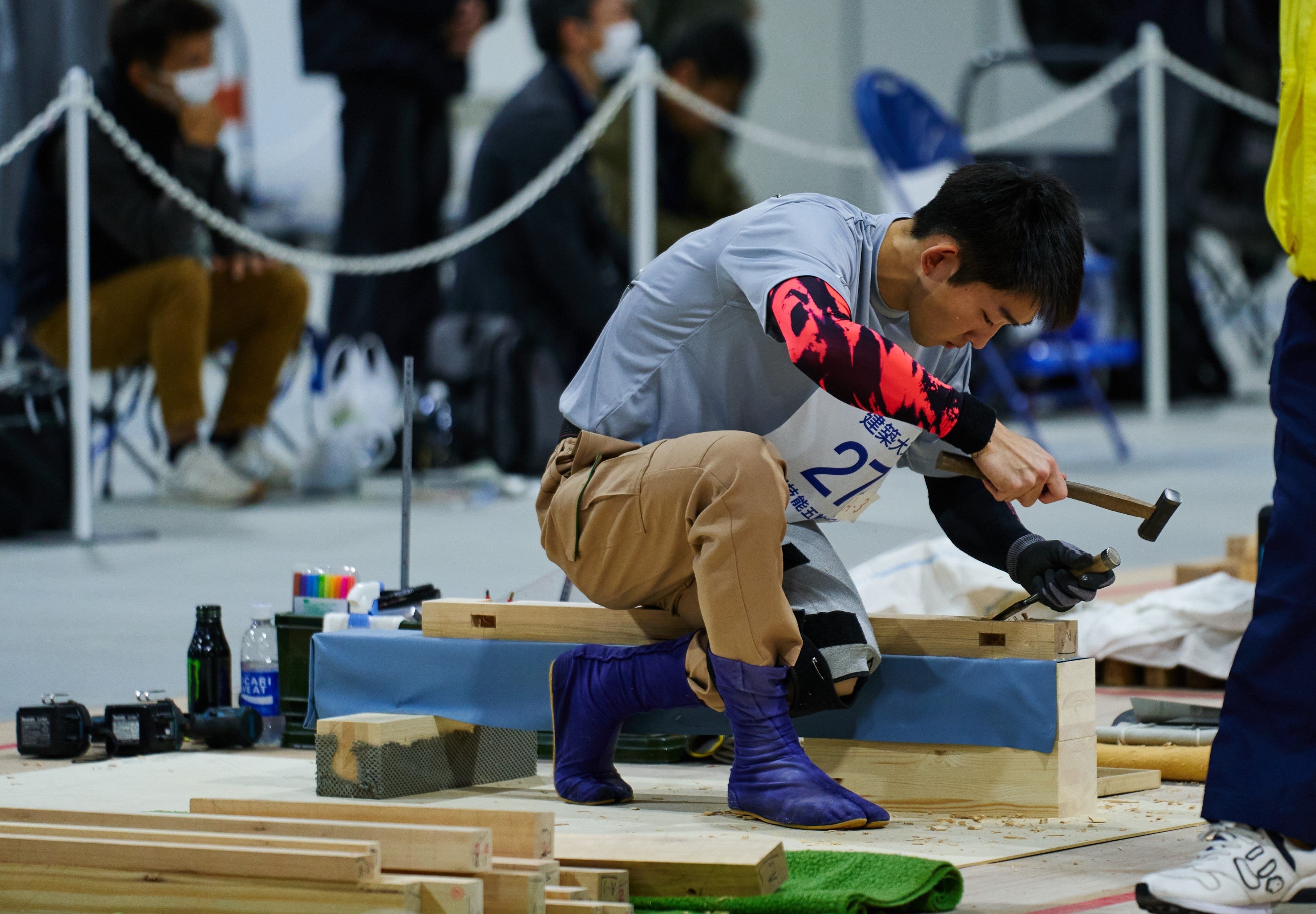 出場した各選手は専門校で大工や左官としての必要な訓練を修了した技能職社員の中から選抜され、競技に向けて練習を重ね大会に臨みました。