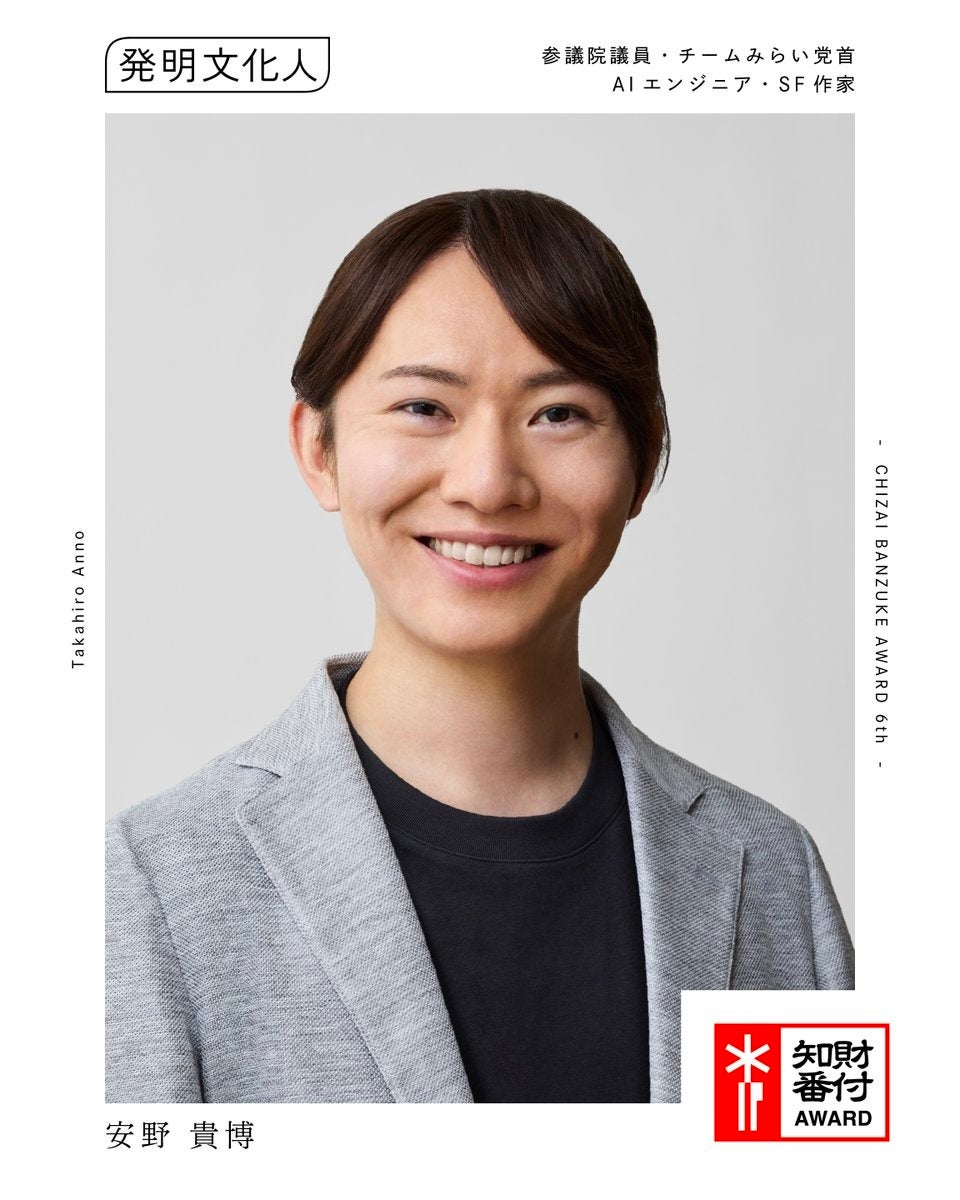 テクノロジーを「道具」から「文化」へと昇華させ、未来の景色を耕す越境的なリーダーを讃える「発明文化人」。安野 貴博 氏(参議院議員・チームみらい党首・AIエンジニア・SF作家)、引地 耕太 氏(株式会社VISIONs CEO / 一般社団法人COMMONs 代表理事)、守屋 貴行 氏(株式会社Aww / 株式会社NION 代表取締役社長)の初代受賞者3名が決定いたしました。