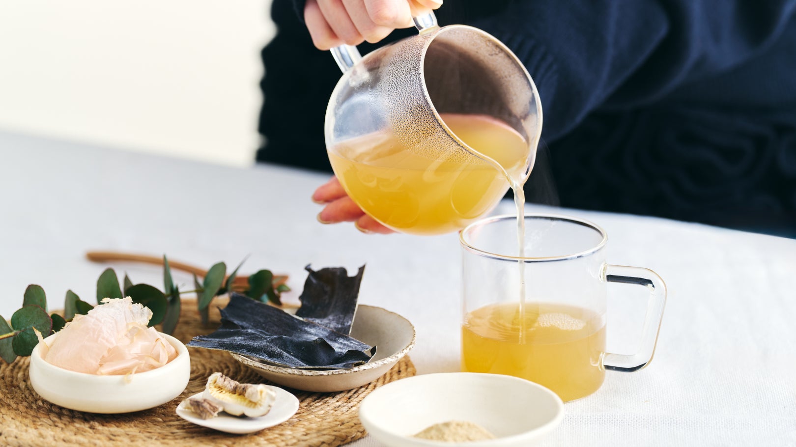 鰹節のイノシン酸、昆布のグルタミン酸、椎茸のグアニル酸などの旨み成分は、うるおう肌に欠かせないアミノ酸の一種。