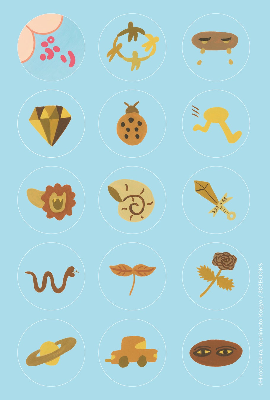 ひろたあきらさんがひねり出した、かわいらしい「うんこ」をポストカードサイズのシールにして配布! 書店版と楽天ブックス限定版があります。各14種類の「うんこ」と1種類の「ぷり」シールが楽しめます。配布店舗については303BOOKSの『ぷり』特設サイトで発公開しています。
