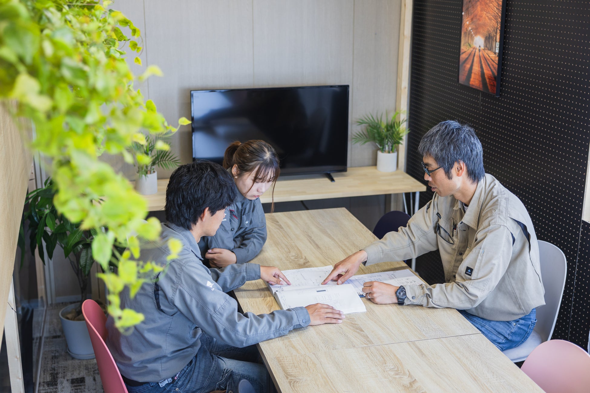 当社は従業員の心身の健康の向上を目的とした、ウェルネス仕様の建設現場事務所を導入しています。工期に定めのある現場事務所は最低限の設備や環境にとどまりがちですが、当現場事務所は現場で働く従業員のために、「清潔性、業務快適性、疲労軽減」といった機能面に加え、「リラックス・リフレッシュ、コミュニケーション促進」といった情緒面にも配慮した内容となっています。また、従業員の心身の健康や快適性を職場環境から後押しすることは、期日に対しての円滑な業務遂行、施工品質の向上にもつながると考えています。