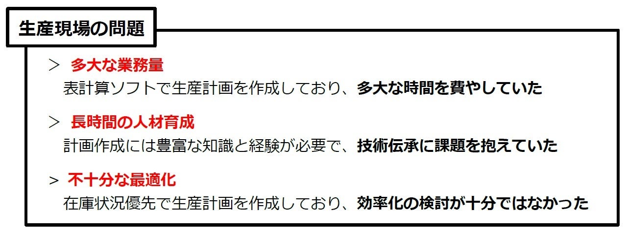 AI(アルゴリズム)を用いた生産計画最適化ソリューションを導入