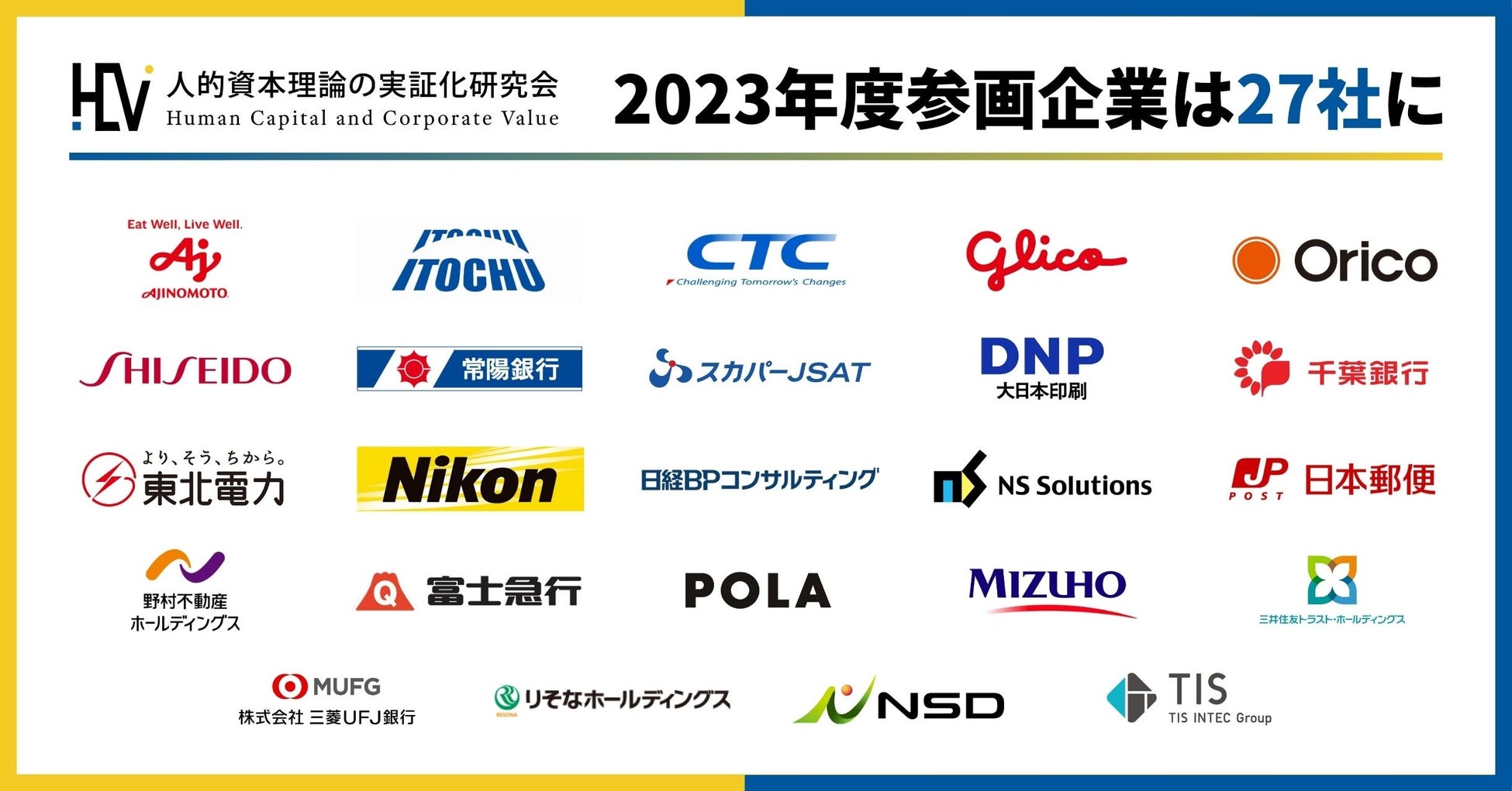 【人的資本理論の実証化研究会】2023年度参画企業は27社に。味の素、伊藤忠商事、資生堂等の人材能力データ等をもとに、企業価値に影響を与える人的資本の指標を更に検証