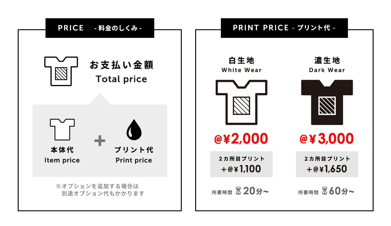 Tシャツをはじめ、マグカップ・ハンカチなどをその場で製作することができ、大口注文にも対応しているため、個人・法人のお客様を問わずご利用いただいています。専任の担当者がご要望をヒアリングし、10,000点以上の商品からご提案し、プリント方法の選定から完成までオリジナル製作をワンストップでサポートいたします。