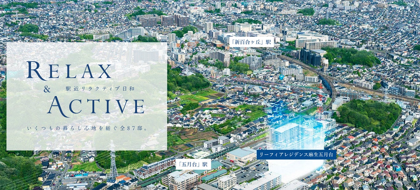 「リーフィアレジデンス麻生五月台」は、小田急多摩線「五月台」駅から徒歩3分の距離でありながら、緑豊かで閑静な住宅街に位置しています。徒歩10分圏内には13カ所もの公園があり、商業施設が集積した「新百合ヶ丘」を生活圏とした、自然と利便性を享受できるロケーションです。「型にはまらない暮らし」という本物件のコンセプトには、働き方や暮らし方が多様化する時代に、様々なライフスタイルを受け入れ、多世代が心地よく暮らせるレジデンスの創出という願いが込められています。