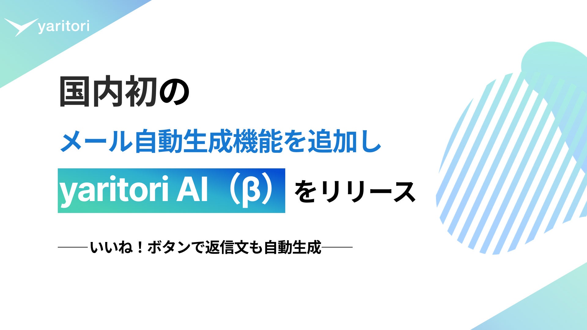 国内初のメール文の自動生成機能を追加し「yaritori AI(β)」をリリース