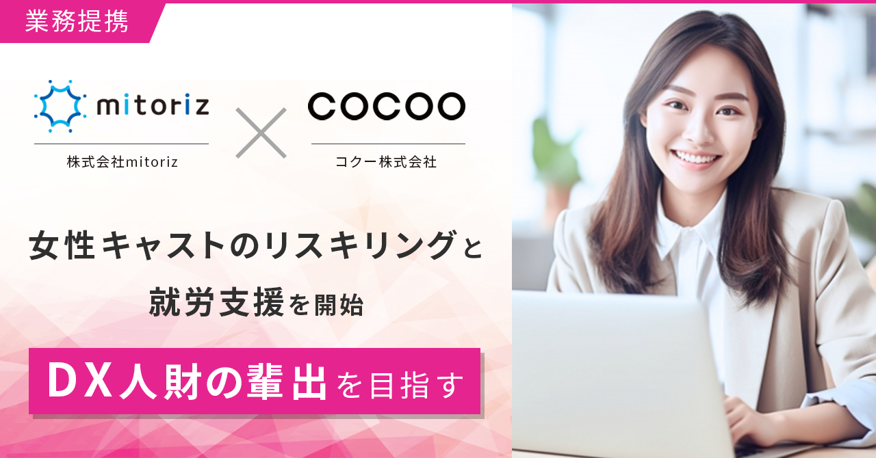 コクー、クラウドソーシング事業を展開する株式会社mitorizとアライアンス契約を締結。女性キャストのリスキリングと就労支援でDX人財の輩出を目指す