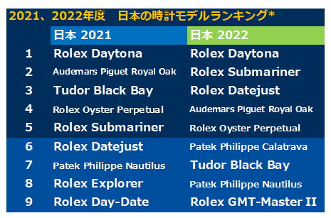 日本のモデルランキングではTop3をRolexモデルが独占する結果に!