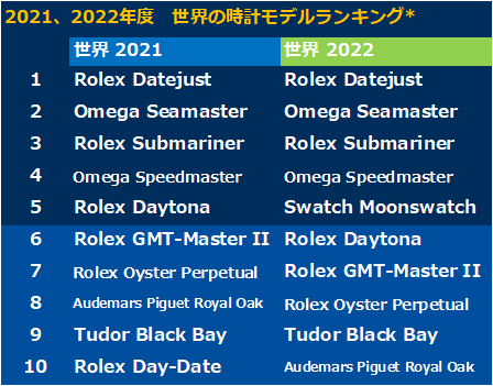 新顔MoonSwatchが世界5位に君臨、日本ではトップ3をRolexが占める結果に!世界最大級の高級時計専門マーケットプレイスChrono24が2022年高級時計の人気ランキングを発表!