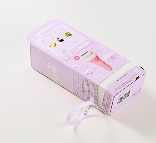 プラスチックから、環境に配慮した紙パッケージになります。パッケージデザインは「美容ツール」としての佇まいを意識し、潤いを感じさせる美容ジェルのモチーフを全面に用いました。剃り心地を感じさせる白い帯のデザインにより、“美容+シェービングの心地よさ” を表現しています。