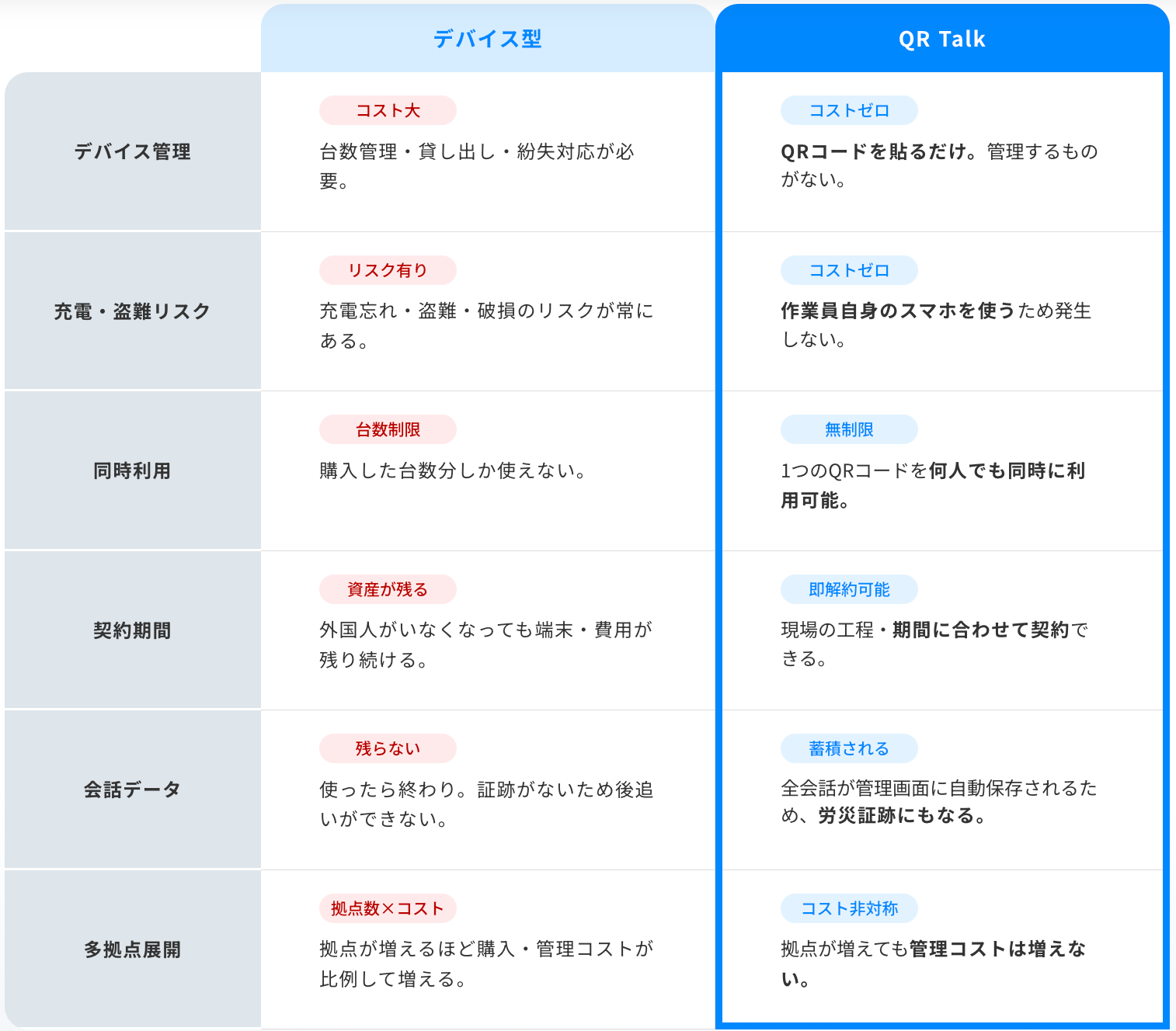 QR Talkは単なる翻訳ツールではなく、建設現場における以下の経営課題に対するインフラと位置付けられます。