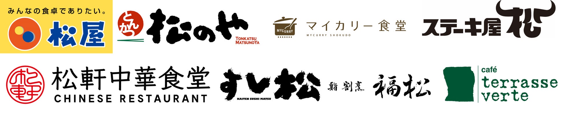 「松屋」をはじめ、「松のや」、「マイカリー食堂」、「ステーキ屋松」、「すし松」、