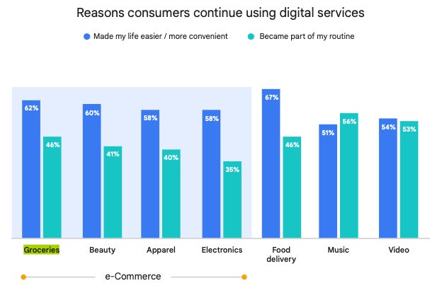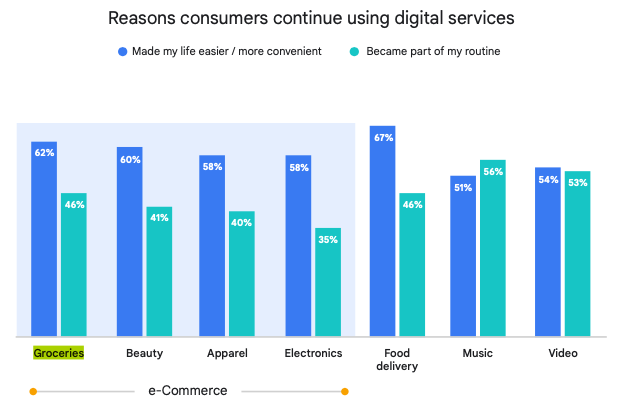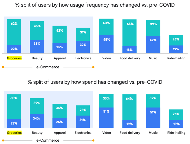 新規ユーザーの増加と合わせ、既存ユーザーは食料品をオンラインで購入する頻度と支出が増えています。多くの人にとって、オンラインショッピングは便利で新しい、当たり前の習慣になりつつあります。