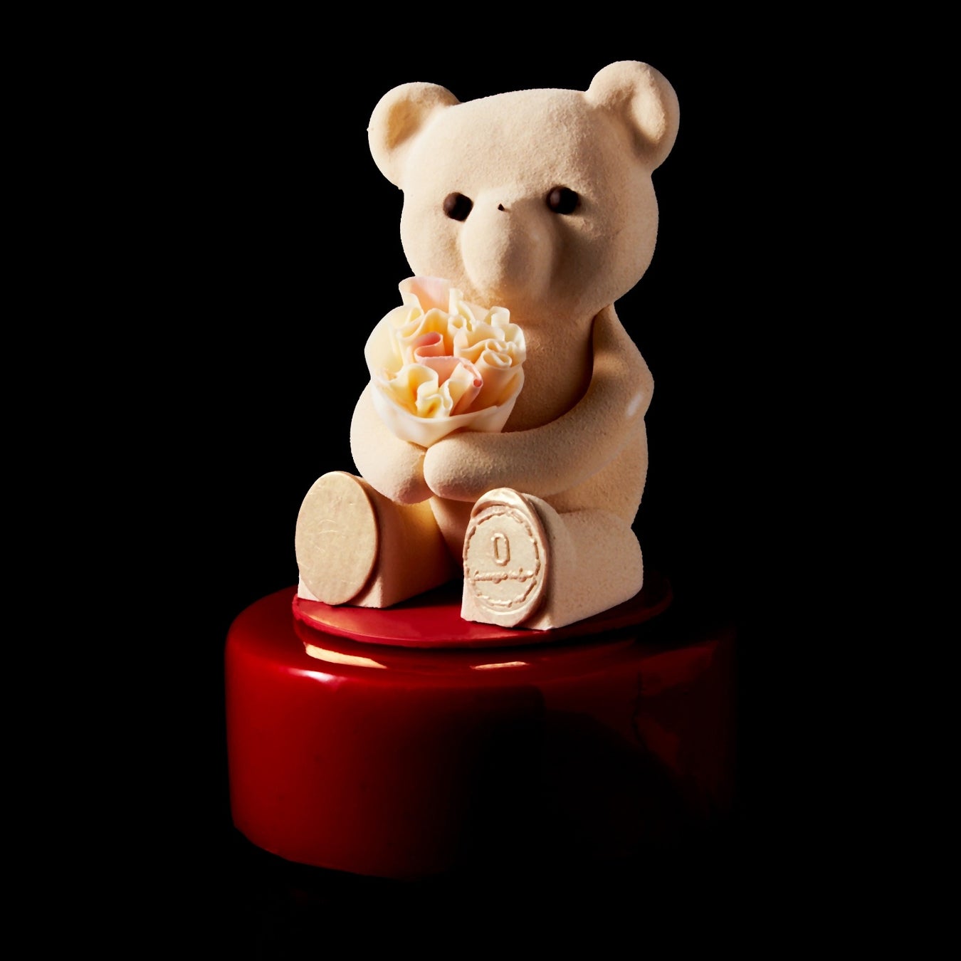 人気のテディベア“ヌーミー”がお花に可愛らしく包まれたレアチーズケーキです。カットするとシャンパンがほのかに香る苺のコンフィチュールが中から溢れだす仕掛けに。フランスの世界有数なシャンパン、モエ・エ・シャンドンから新鮮な果実味とエレガントな熟成感が特徴の「ロゼアンぺリアル」をシャンパンジュレに使用。赤い果実やバラの香りを深くご堪能してください。