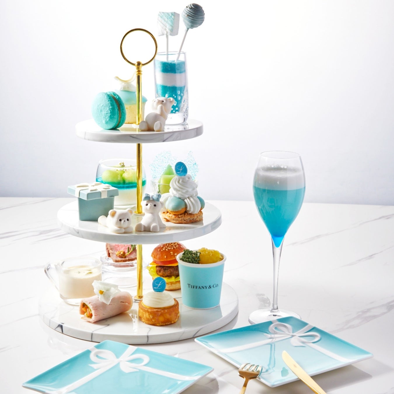 新作アフタヌーンティー”エレガンス ブルー”が期間限定で登場します。純白の姿に変身したテディベアの“ヌーミー”“エイミー”とともに、ブルーをテーマにした上品なアフタヌーンティーをお楽しみください。