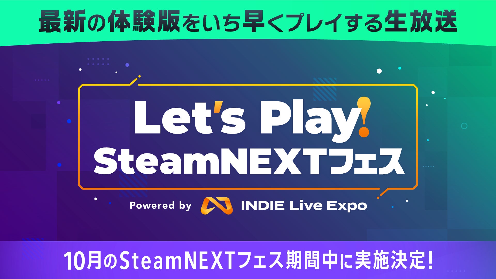 <「Let’s Play Steam NEXTフェス Powered by INDIE Live Expo」10月開催決定>